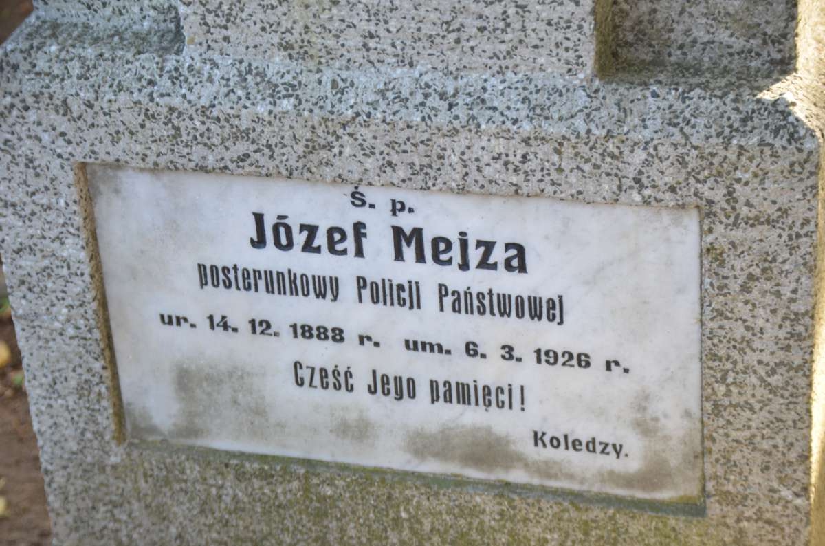 Policjanci Komendy Powiatowej Policji w Kościerzynie tradycyjnie odwiedzają przed uroczystościami Wszystkich Świętych m.in. grób post. Józef Mejza, który zmarł w 1926 r. na grypę zwaną „Hiszpanką”. Miał on wówczas 38 lat. Funkcjonariusze uporządkowali nagrobek, zapalili znicze, odmówili modlitwę za zmarłego. Warto nadmienić, że ten właśnie nagrobek został odnowiony w 2016 r. dzięki zaangażowaniu kościerskich policjantów.