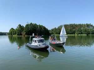 POLICJANCI PATROLUJĄ JEZIORA DBAJĄC O BEZPIECZEŃSTWO.
