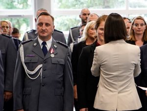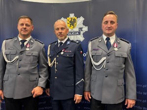 W Komendzie Wojewódzkiej Policji w Gdańsku odbyły się dziś uroczyste obchody Święta Policji. Podczas ceremonii wręczono odznaczenia państwowe i resortowe oraz awanse na wyższe stopnie służbowe. Wśród wyróżnionych znaleźli się asp. sztab. Artur Rolbiecki i asp. sztab. Krzysztof Cylkowski z Kościerzyny, którzy otrzymali srebrne Medale za Długoletnią Służbę.