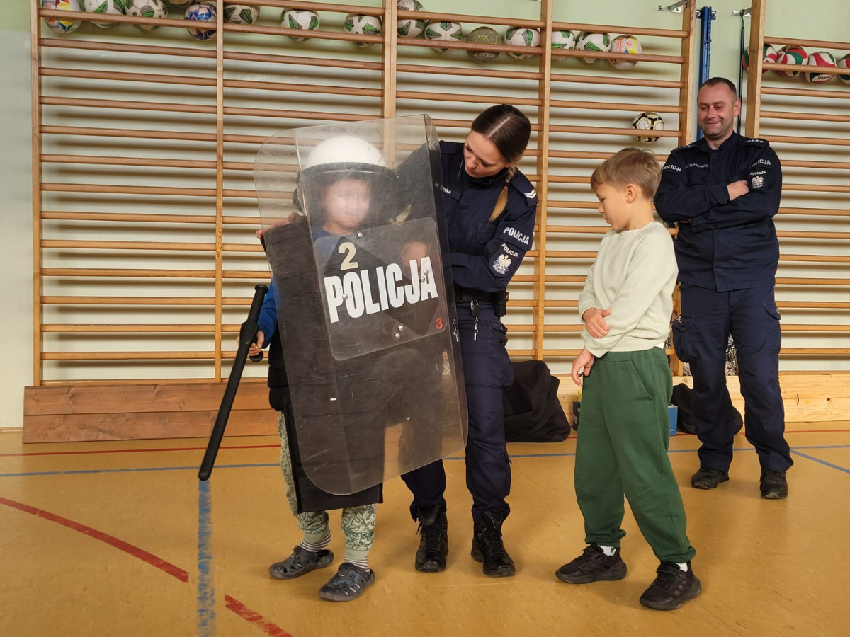 Spotkanie z policjantami było dla dzieci dużą atrakcją. Maluchy aktywnie uczestniczyły w zabawach i rozmowach, chętnie zadawały pytania i odpowiadały na zagadki przygotowane przez funkcjonariuszki.
