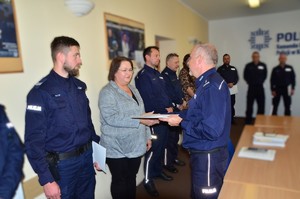 Komendant mł. insp. Radosław Kałaska pogratulował wszystkim wyróżnionym, życząc im dalszych sukcesów, satysfakcji z pełnionej służby oraz bezpiecznych powrotów do domu po każdym dniu pracy.