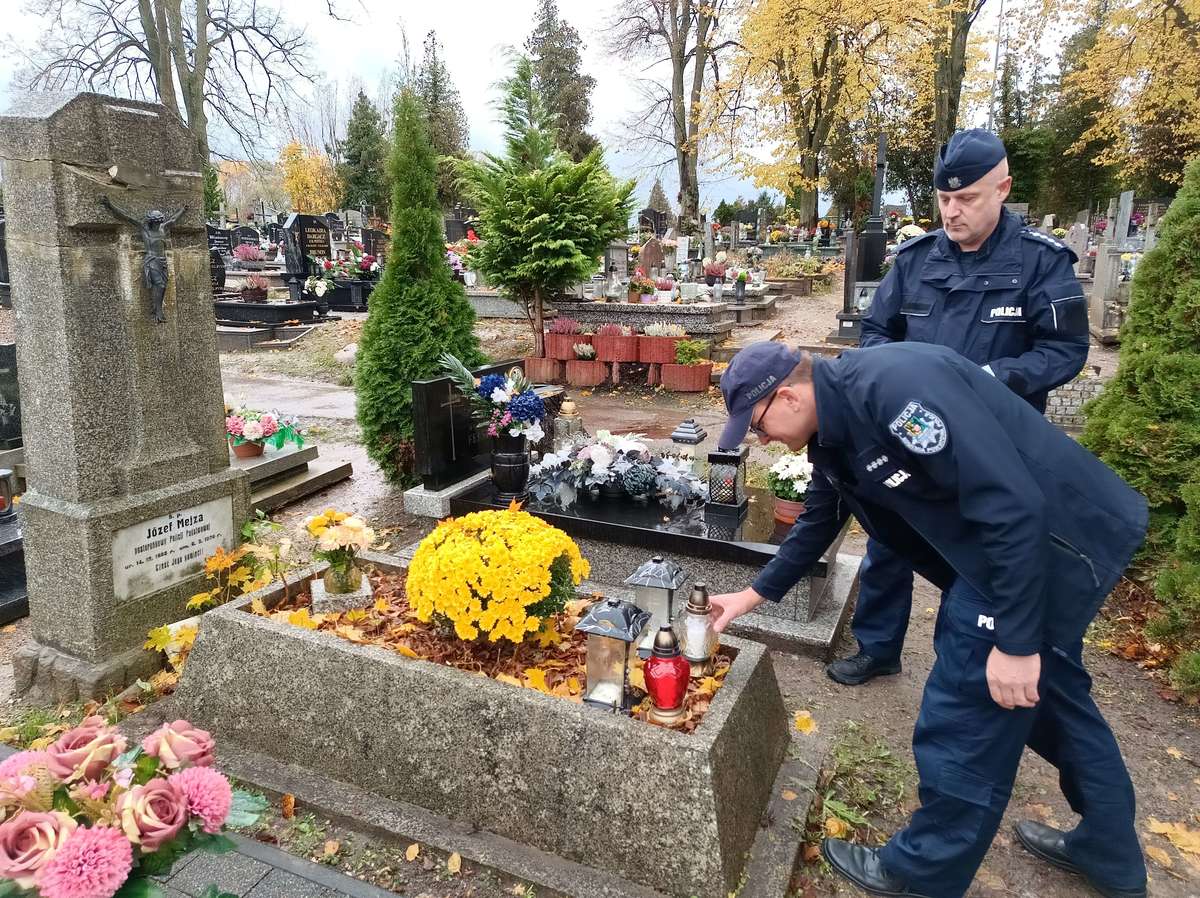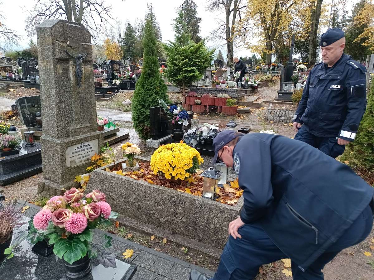 Przed dniem Wszystkich Świętych kościerscy policjanci odwiedzili grób funkcjonariusza Policji Państwowej – posterunkowego Józefa Mejzy, który zmarł 99 lat temu na tzw. „hiszpankę”. Mundurowi zapalili znicze na grobie i oddali hołd swojemu poprzednikowi. Posterunkowy Józef Mejza, funkcjonariusz Państwowej Policji, zmarł w 1926 roku w wieku 38 lat w wyniku zachorowania na grypę zwaną potocznie „hiszpanką”. Rodzina policjanta żyła w trudnych warunkach i nie miała środków na organizację pogrzebu ani wykonanie nagrobka. Z pomocą przyszli jego koledzy z pracy, którzy zebrali fundusze i ufundowali nagrobek, by uczcić pamięć zmarłego funkcjonariusza. Dziewięć lat temu, z inicjatywy kościerskich policjantów i przy wsparciu Niezależnego Samorządnego Związku Zawodowego Policjantów, nagrobek został odnowiony. Jak co roku przed dniem Wszystkich Świętych, dzielnicowi z Komendy Powiatowej Policji w Kościerzynie odwiedzili grób posterunkowego Józefa Mejzy. Mundurowi zapalili znicze, oddali honory i zmówili modlitwę, oddając w ten sposób cześć pamięci policjanta, który pełnił służbę w odrodzonej Polsce.