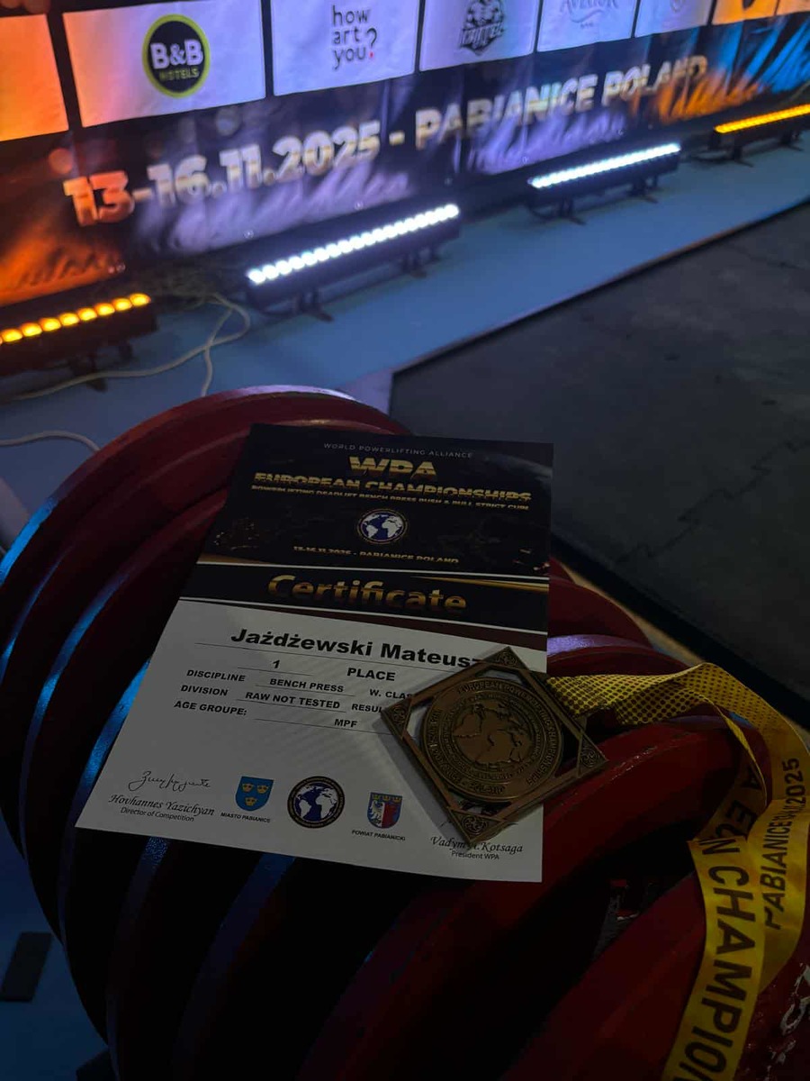 W miniony weekend Pabianice stały się sportową areną dla zawodników startujących w Mistrzostwach Europy w wyciskaniu sztangi leżąc federacji WPA. Wśród nich znalazł się Mateusz Jażdżewski, funkcjonariusz Komendy Powiatowej Policji w Kościerzynie oraz słuchacz Akademii Policyjnej w Szczytnie, który zaprezentował się z wyjątkowo mocnej strony. Mateusz startował w kategorii wiekowej 18–19 lat do 75 kg, rywalizując zarówno z młodymi sportowcami, jak i zawodnikami reprezentującymi służby mundurowe. Jego przygotowanie, konsekwentna praca i determinacja przyniosły znakomite rezultaty. W klasyfikacji służb mundurowych zdobył I miejsce, pokazując, że w tej kategorii nie miał sobie równych. Dodatkowo w kategorii open (olepn) uplasował się na III miejscu, co jest dużym osiągnięciem w starciu z bardziej doświadczonymi zawodnikami. Uzyskane wyniki są dowodem na to, że młody funkcjonariusz potrafi z powodzeniem łączyć służbę, naukę i sportową pasję. Jego sukcesy nie tylko budują jego osobisty dorobek, ale również promują aktywność fizyczną i zdrowy styl życia w środowisku służb mundurowych.
