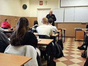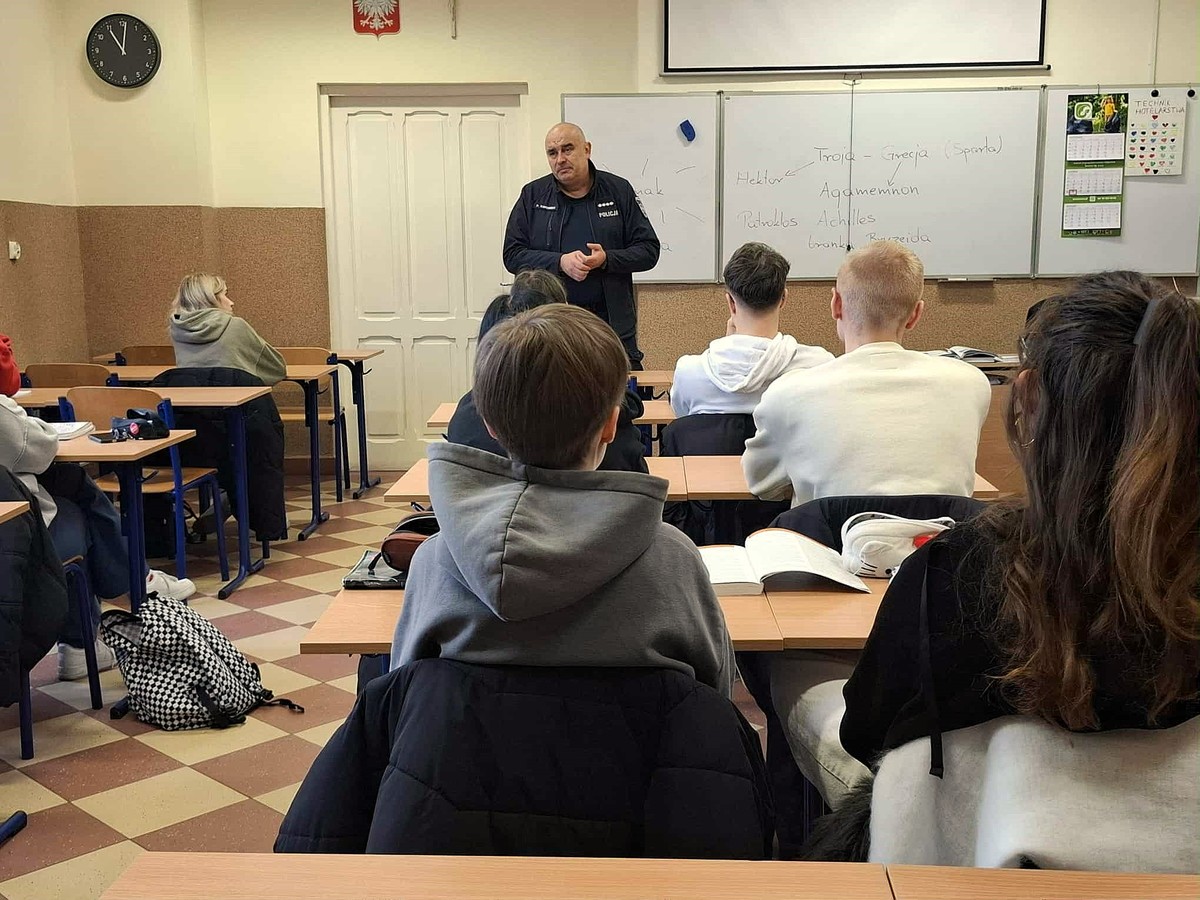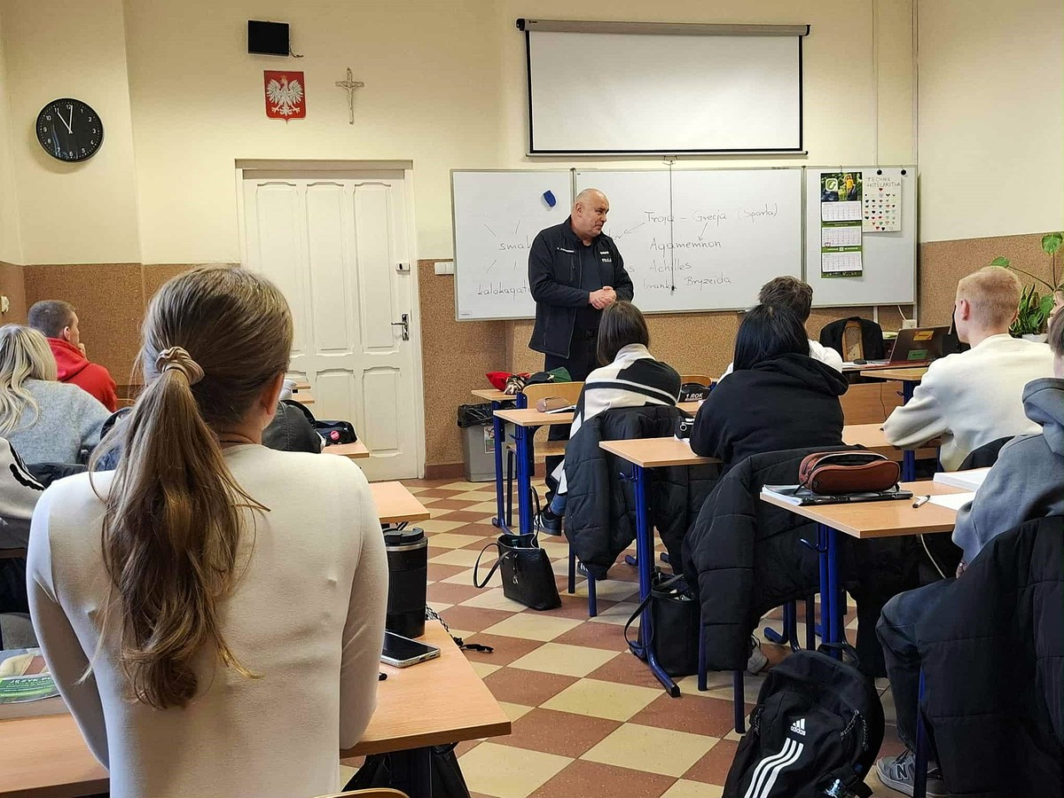 Policjanci z Komendy Powiatowej Policji w Kościerzynie spotkali się z uczniami klas V technikum w PZS nr 2, aby przybliżyć im specyfikę służby i omówić procedury rekrutacyjne dla kandydatów do Policji.