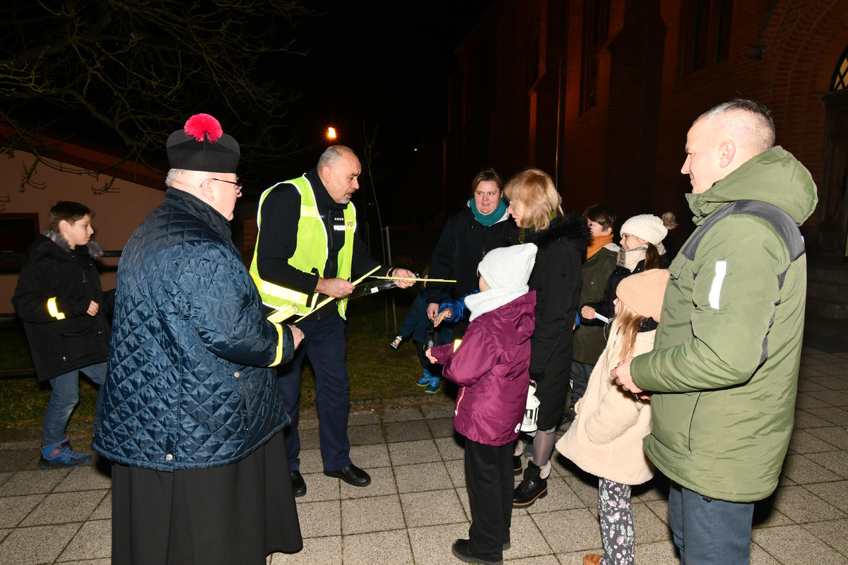 Po zakończeniu mszy świętej wszyscy uczestnicy spotkania otrzymali od policjantów elementy odblaskowe.