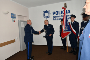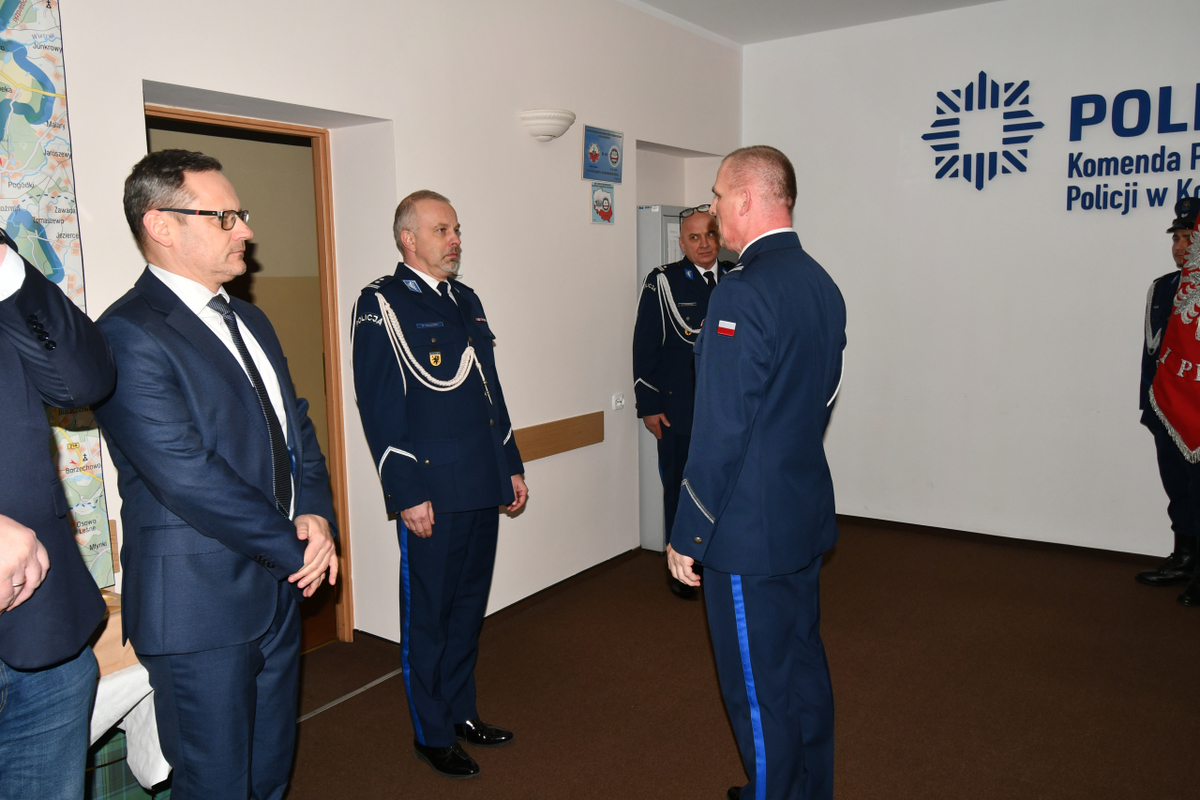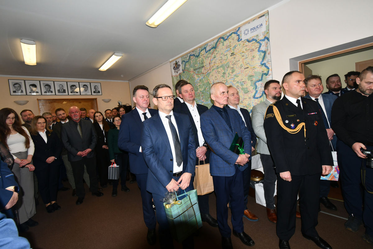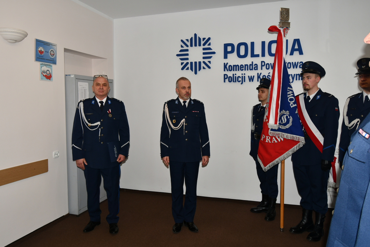 W piątek, 16 stycznia 2026 roku, w budynku Komendy Powiatowej Policji w Kościerzynie odbyła się uroczysta zbiórka zorganizowana zgodnie z ceremoniałem policyjnym. Podinsp. Michał Domeracki, który przez ostatni rok pełnił funkcję I Zastępcy Komendanta Powiatowego Policji w Kościerzynie, a w latach 2023–2025 był Komendantem Powiatowym Policji w Kościerzynie, pożegnał się ze sztandarem jednostki. Uroczystość odbyła się w obecności Komendanta Powiatowego Policji w Kościerzynie mł. insp. Radosława Kałaski, zaproszonych komendantów garnizonu pomorskiego, kadry kierowniczej kościerskiej komendy, przedstawicieli władz samorządowych, instytucji współpracujących z Policją oraz zaprzyjaźnionych służb mundurowych. Ceremonię rozpoczęło złożenie meldunku Komendantowi Powiatowemu Policji w Kościerzynie przez dowódcę uroczystości. Przed odczytaniem rozkazu personalnego o zwolnieniu ze służby przedstawiono najważniejsze etapy kariery zawodowej podinsp. Michała Domerackiego. Służbę w Policji rozpoczął 20 listopada 1995 roku, po odbyciu zasadniczej służby wojskowej. Jest absolwentem Wyższej Szkoły Policji w Szczytnie. Po ukończeniu szkolenia podstawowego pełnił służbę w Zespole Patrolowo-Interwencyjnym Komendy Powiatowej Policji w Kartuzach, a następnie od stycznia 1997 roku w Komisariacie Policji w Chmielnie. W latach 1998–2018 związany był z Komisariatem Policji w Żukowie, gdzie pełnił służbę w pionie dochodzeniowo-śledczym, a następnie zajmował stanowiska Zastępcy Komendanta oraz Komendanta Komisariatu. Z dniem 17 września 2018 roku został mianowany Zastępcą Naczelnika Wydziału Dochodzeniowo-Śledczego Komendy Miejskiej Policji w Gdańsku, a od 1 kwietnia 2020 roku pełnił funkcję Naczelnika tego wydziału. Z dniem 29 lipca 2020 roku został przeniesiony do Komendy Powiatowej Policji w Kościerzynie, gdzie objął stanowisko I Zastępcy Komendanta Powiatowego Policji, a następnie stanowisko Komendanta Powiatowego Policji w Kościerzynie. Pod koniec 2025 roku podinsp. Michał Domeracki podjął decyzję o przejściu na zasłużoną emeryturę z dniem 16 stycznia 2026 roku. Po odczytaniu rozkazu personalnego uroczyście pożegnał się ze sztandarem jednostki oraz złożył meldunek o zdaniu obowiązków.