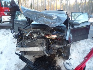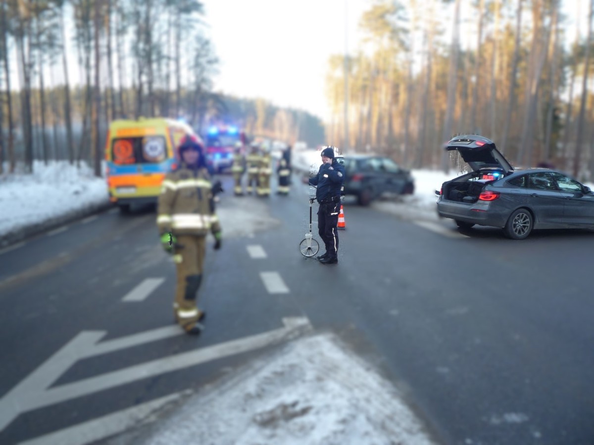 Dziś około godziny 14.15 dyżurny Komendy Powiatowej Policji w Kościerzynie otrzymał zgłoszenie o wypadku drogowym na drodze wojewódzkiej nr 214 w rejonie miejscowości Skorzewo. Na miejsce natychmiast skierowano policjantów, którzy zabezpieczyli teren zdarzenia, wykonali dokumentację fotograficzną, przeprowadzili oględziny oraz rozmawiali ze świadkami. Ze wstępnych ustaleń funkcjonariuszy wynika, że 74-letnia kobieta kierująca Toyotą Yaris, wyjeżdżając z drogi podporządkowanej, nie ustąpiła pierwszeństwa przejazdu i zderzyła się z jadącym drogą z pierwszeństwem Seatem Leon, którym kierował 41-letni mężczyzna. Siła uderzenia była na tyle duża, że Seat zjechał na przeciwległy pas ruchu, gdzie doszło do czołowego zderzenia z Audi A3 kierowanym przez 20-latka. W wyniku wypadku dwoje pasażerów Audi zostało przewiezionych do szpitala. Policjanci sprawdzili stan trzeźwości wszystkich kierujących — wszyscy byli trzeźwi.