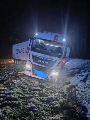 11 lutego 2025 r. o godz. 18:15 policjanci otrzymali zgłoszenie o zdarzeniu drogowym, do którego doszło na drodze wojewódzkiej nr 235 pomiędzy miejscowościami Korne i Lipusz. W chwili zdarzenia panowały trudne warunki atmosferyczne — występowały intensywne opady śniegu, a nawierzchnia była śliska. Ze wstępnych ustaleń funkcjonariuszy pracujących na miejscu wynika, że kierujący samochodem ciężarowym z naczepą, 44-letni mieszkaniec Warszawy, nie dostosował prędkości do panujących warunków drogowych, w wyniku czego stracił panowanie nad pojazdem, wpadł w poślizg i zablokował jezdnię. Na miejscu interweniowali policjanci z Kościerzyny oraz Brus, którzy zorganizowali objazdy i czuwali nad bezpieczeństwem uczestników ruchu drogowego. Wezwano również pomoc drogową, która pomogła w usunięciu pojazdu i udrożnieniu drogi. Działania zakończyły się przed godz. 21:00. Kierujący był trzeźwy.