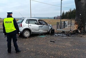 Dziś o godz. 5.50 dyżurny Komendy Powiatowej Policji w Kościerzynie otrzymał zgłoszenie o wypadku drogowym na drodze wojewódzkiej nr 214 w rejonie miejscowości Stara Kiszewa. Na miejsce natychmiast skierowano patrol ruchu drogowego kościerskiej komendy. Po zabezpieczeniu miejsca zdarzenia funkcjonariusze wstępnie ustalili okoliczności wypadku. Ze zgromadzonych informacji wynika, że 18-letni mieszkaniec powiatu kościerskiego, kierujący samochodem marki VW Polo, na prostym odcinku drogi stracił panowanie nad pojazdem, a następnie uderzył w drzewo. W wyniku odniesionych obrażeń mężczyzna poniósł śmierć na miejscu. Policjanci przesłuchali świadków zdarzenia, zabezpieczyli monitoring oraz sporządzili dokumentację fotograficzną. Przeprowadzono również oględziny miejsca wypadku z udziałem biegłego z zakresu rekonstrukcji wypadków drogowych. Wszystkie czynności były prowadzone pod nadzorem Prokuratury Rejonowej w Kościerzynie. Mundurowi szczegółowo wyjaśniają przyczyny oraz dokładny przebieg tego tragicznego zdarzenia.