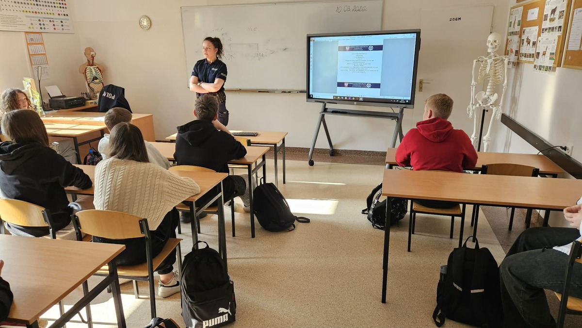 Funkcjonariuszka z Komendy Powiatowej Policji w Kościerzynie spotkała się z uczniami starszych klas szkół podstawowych w Wielkim Podlesiu i Dziemianach. Podczas zajęć omówiono zagadnienia związane z przemocą rówieśniczą, cyberprzemocą oraz odpowiedzialnością prawną nieletnich.