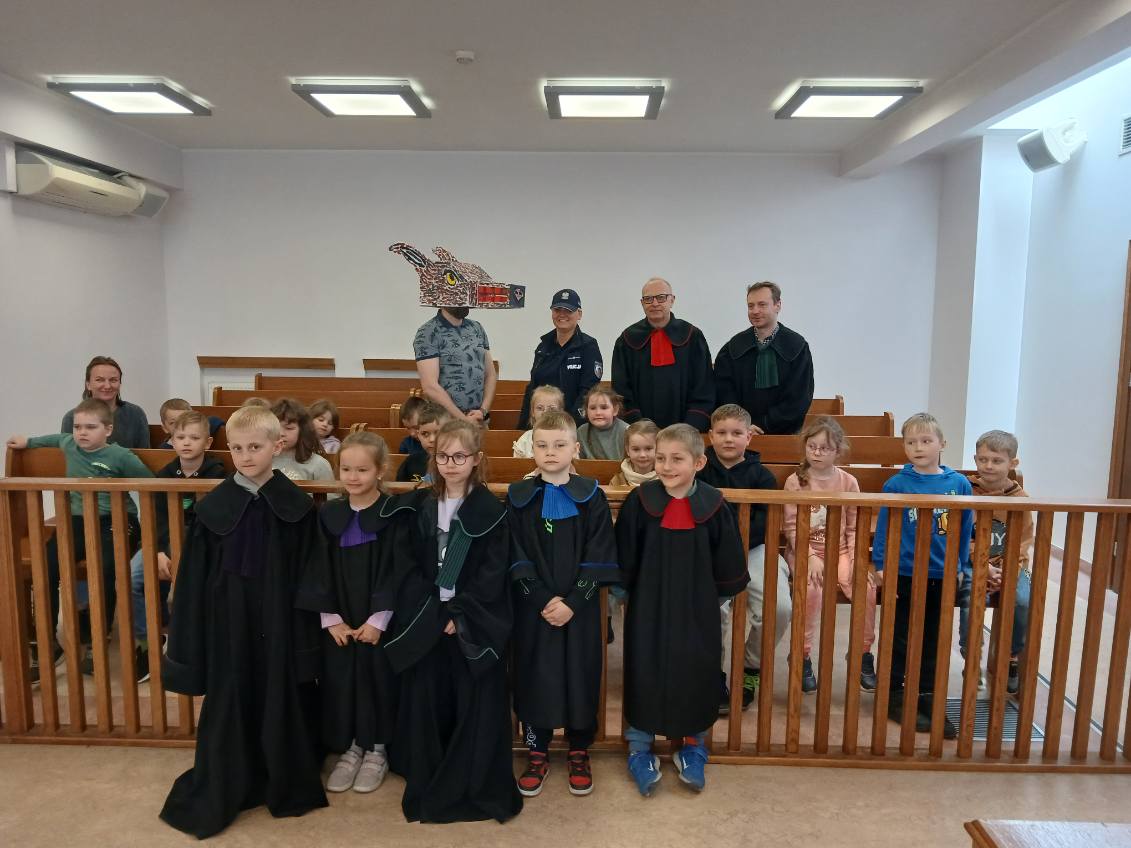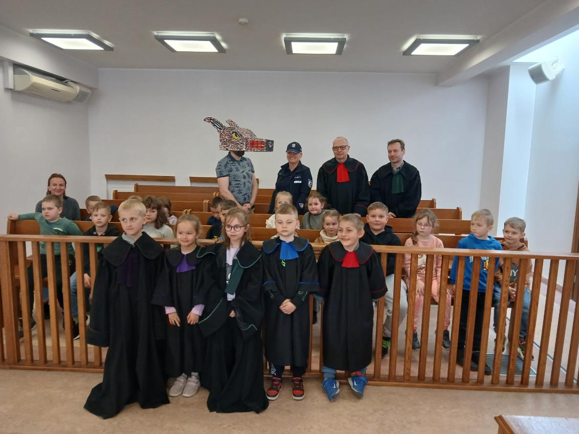 Policjanci wzięli udział w spotkaniu z dziećmi i młodzieżą w ramach „Dnia Otwartego Sądu”, podczas którego uczestnicy mogli z bliska przyjrzeć się pracy funkcjonariuszy oraz poznać zasady funkcjonowania wymiaru sprawiedliwości. Wydarzenie miało charakter edukacyjny i interaktywny, a jego celem było zwiększenie świadomości prawnej młodych ludzi oraz promowanie bezpiecznych zachowań w życiu codziennym i w sieci. Spotkanie odbyło się w Sąd Rejonowy w Kościerzynie.