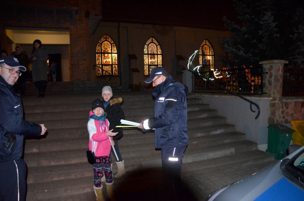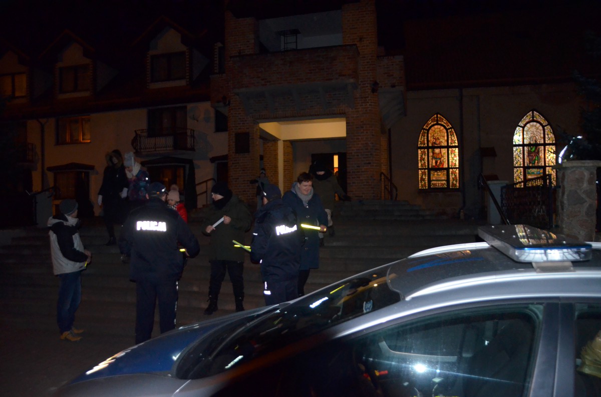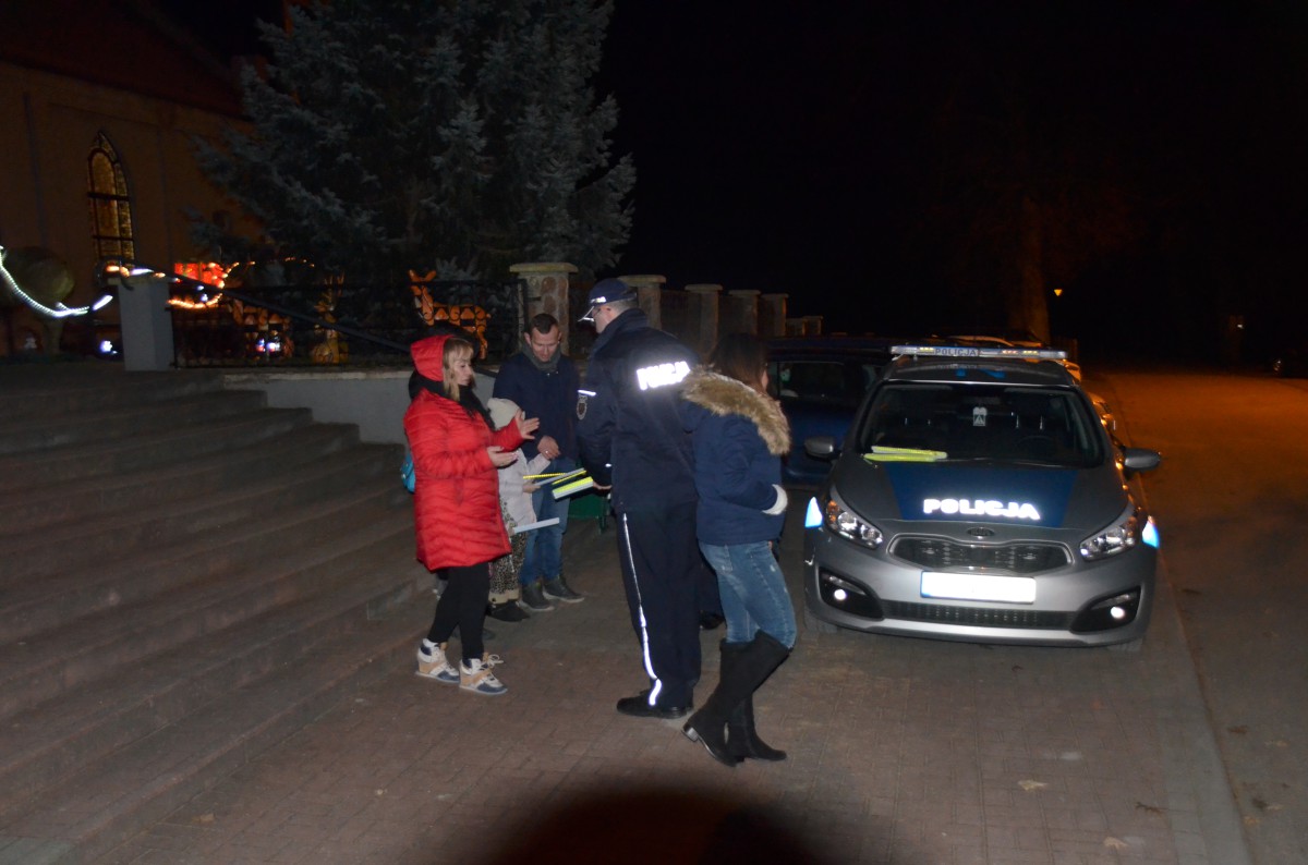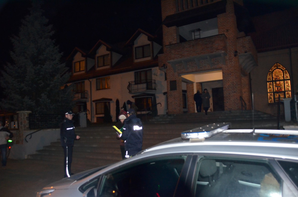 W okresie jesienno-zimowym zmrok na drogach zapada bardzo szybko, a piesi stają się słabo widoczni dla kierowców. W ramach poprawy bezpieczeństwa wczoraj dzielnicowi z kościerskiej komendy odwiedzili trzeci kościół z gminy Kościerzyna, znajdujący się w miejscowości Wielki Klincz. Celem spotkania było przypomnienie przede wszystkim młodym słuchaczom podstawowych zasad bezpieczeństwa i określonych zachowań prowadzących do uniknięcia zagrożeń podczas poruszania się na jezdni i w pobliżu niej. Funkcjonariusze pionu prewencji omówili zasady, które powinny być przestrzegane na drodze oraz zachęcali do noszenia elementów odblaskowych. Po wyjściu z kościoła wszyscy uczestnicy mszy otrzymali paski odblaskowe przekazane przez UG Kościerzyna.