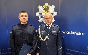W gronie 100 nowo przyjętych policjantów znalazł się post. Mateusz Jażdżewski, który zasili szeregi Komendy Powiatowej Policji w Kościerzynie. Z serdecznością powitał go Komendant Powiatowy Policji, mł. insp. Radosław Kałaska.