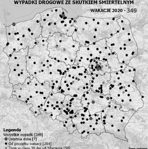 POLICYJNA MAPA WYPADKÓW DROGOWYCH ZE SKUTKIEM ŚMIERTELNYM - WAKACJE 2020